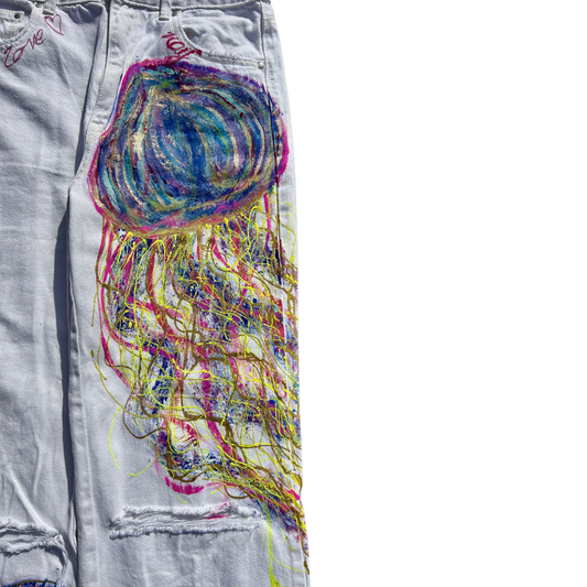 “Wild Bloom” – Hand-Painted Upcycled Denim Jeans