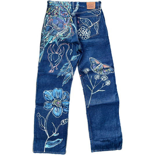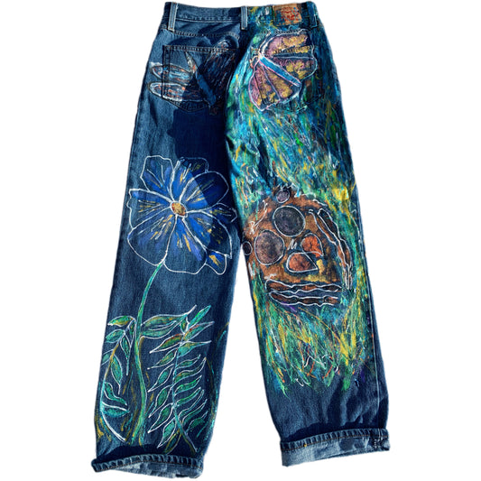 “Garden of Whimsy” Hand-Painted Denim Jeans
