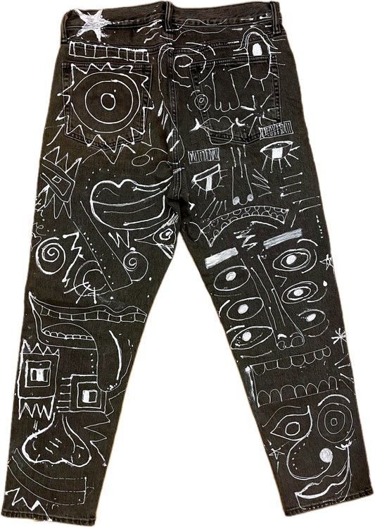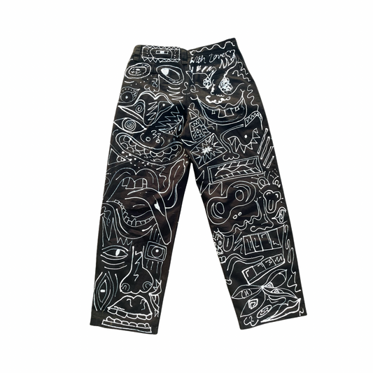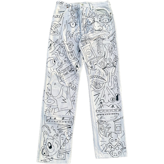 “Monochrome Mayhem: The Doodle Dream Jeans”