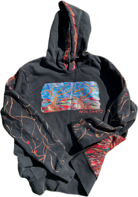 Interested in a unique, hand-painted piece? Whether it’s a jacket, tote, jeans, or canvas artwork, I offer custom commissions with a range of themes in my signature Naif style. The process is simple—reach out, and we’ll discuss your ideas to see if I can create something you’ll love. Every piece is thoughtfully crafted, whether for your wardrobe or home decor.