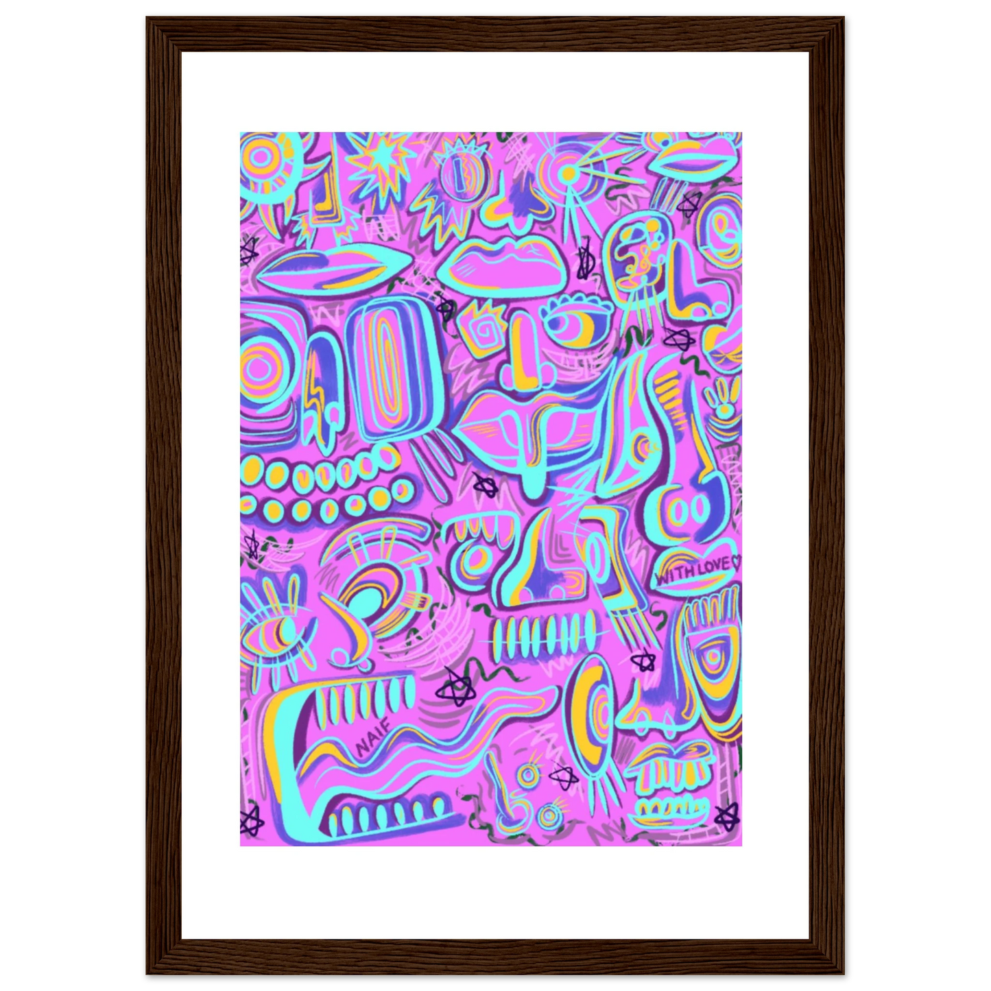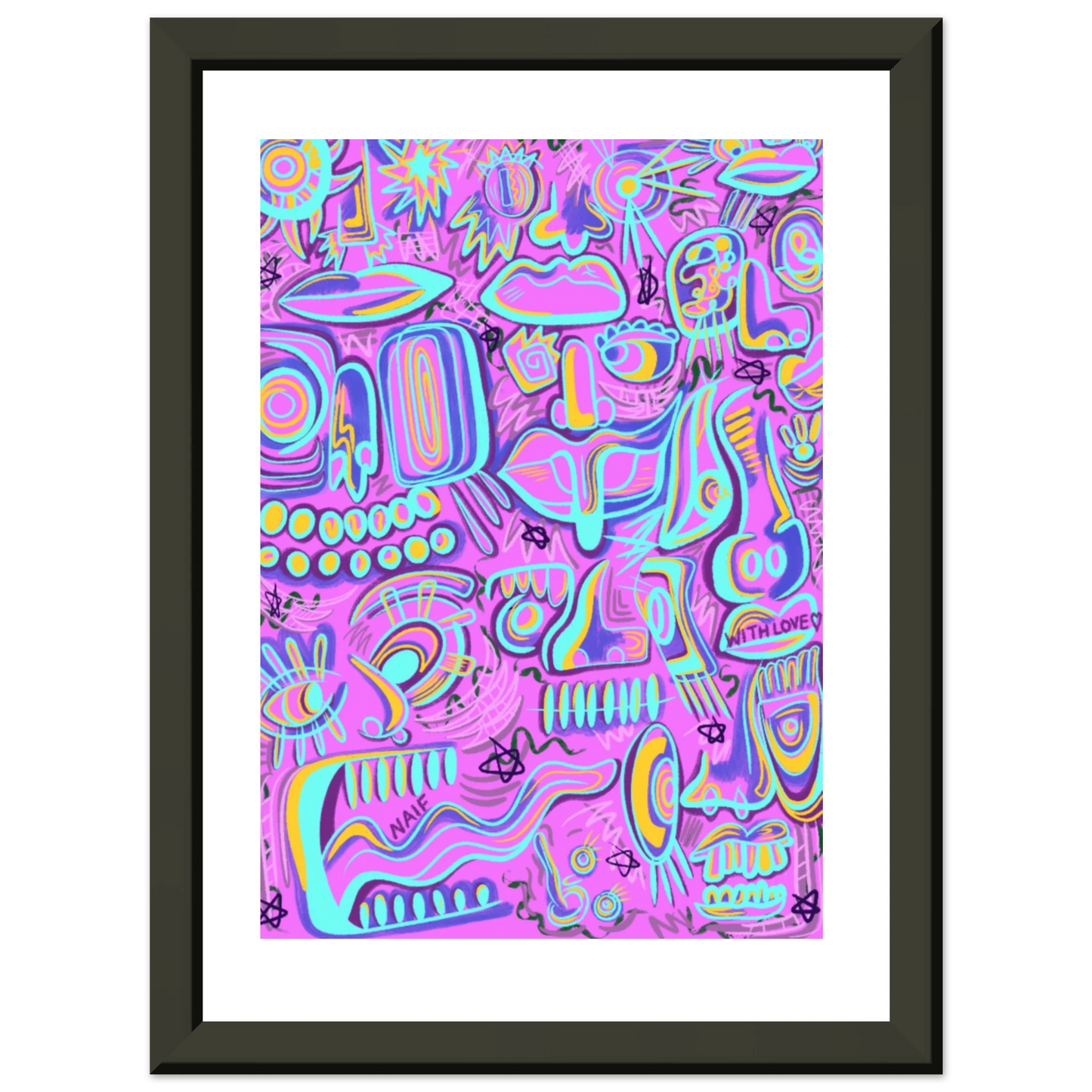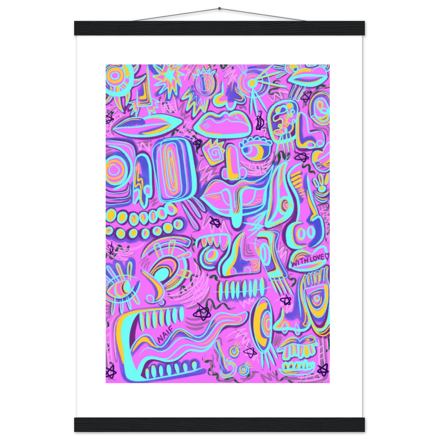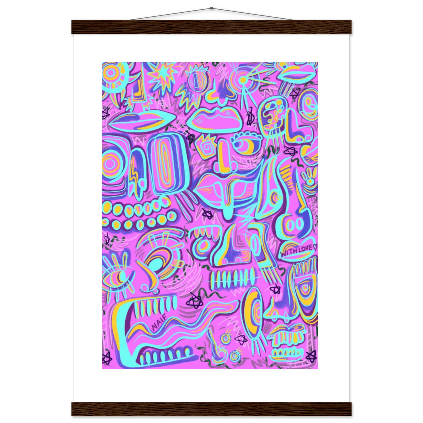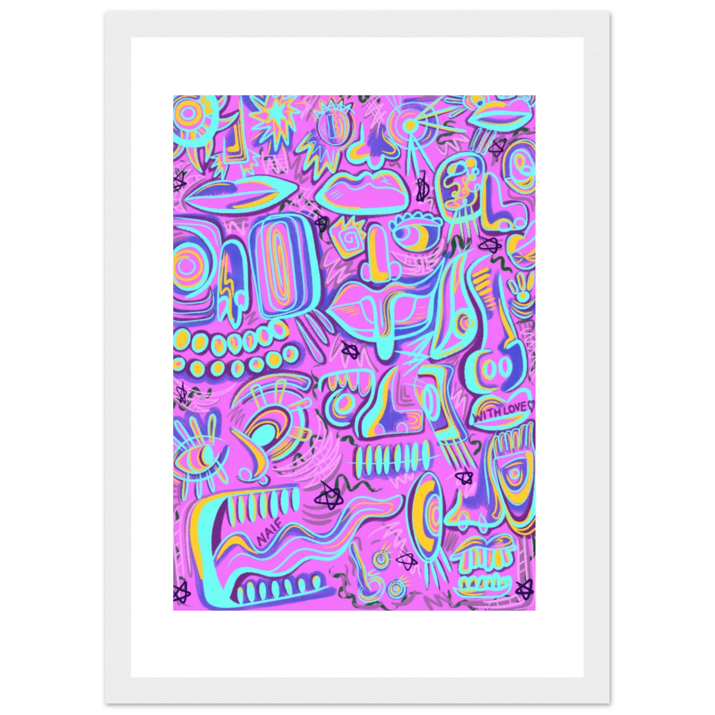 A bold statement piece that brings electric energy to any space. This vibrant abstract artwork features a striking hot pink palette with electric cyan accents, creating a dynamic composition of swirling forms and playful patterns. The piece captures a sense of movement and rhythm that draws the eye and sparks conversation.