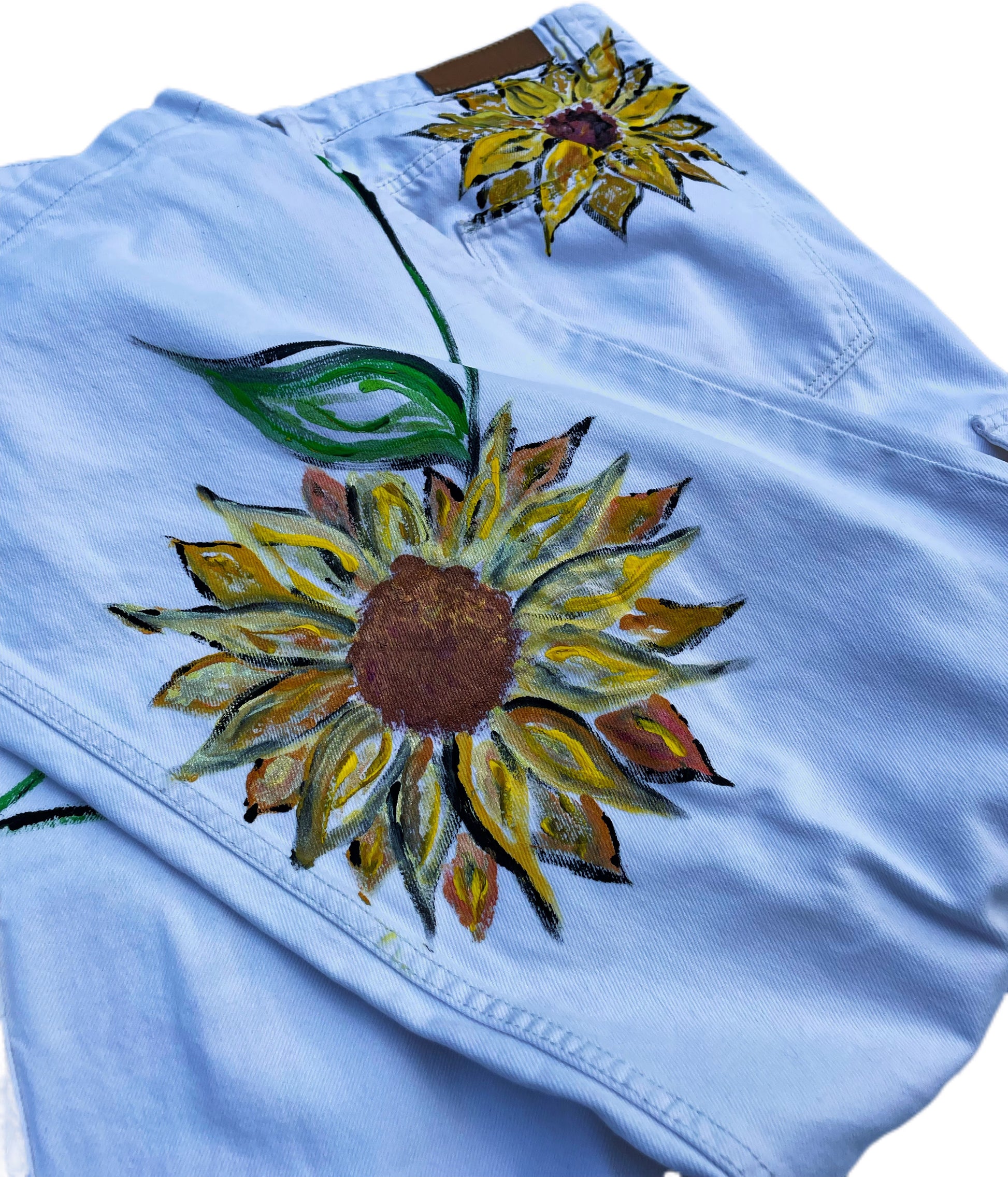 Hand-Painted Denim Trousers – “Sunflowers in Bloom”