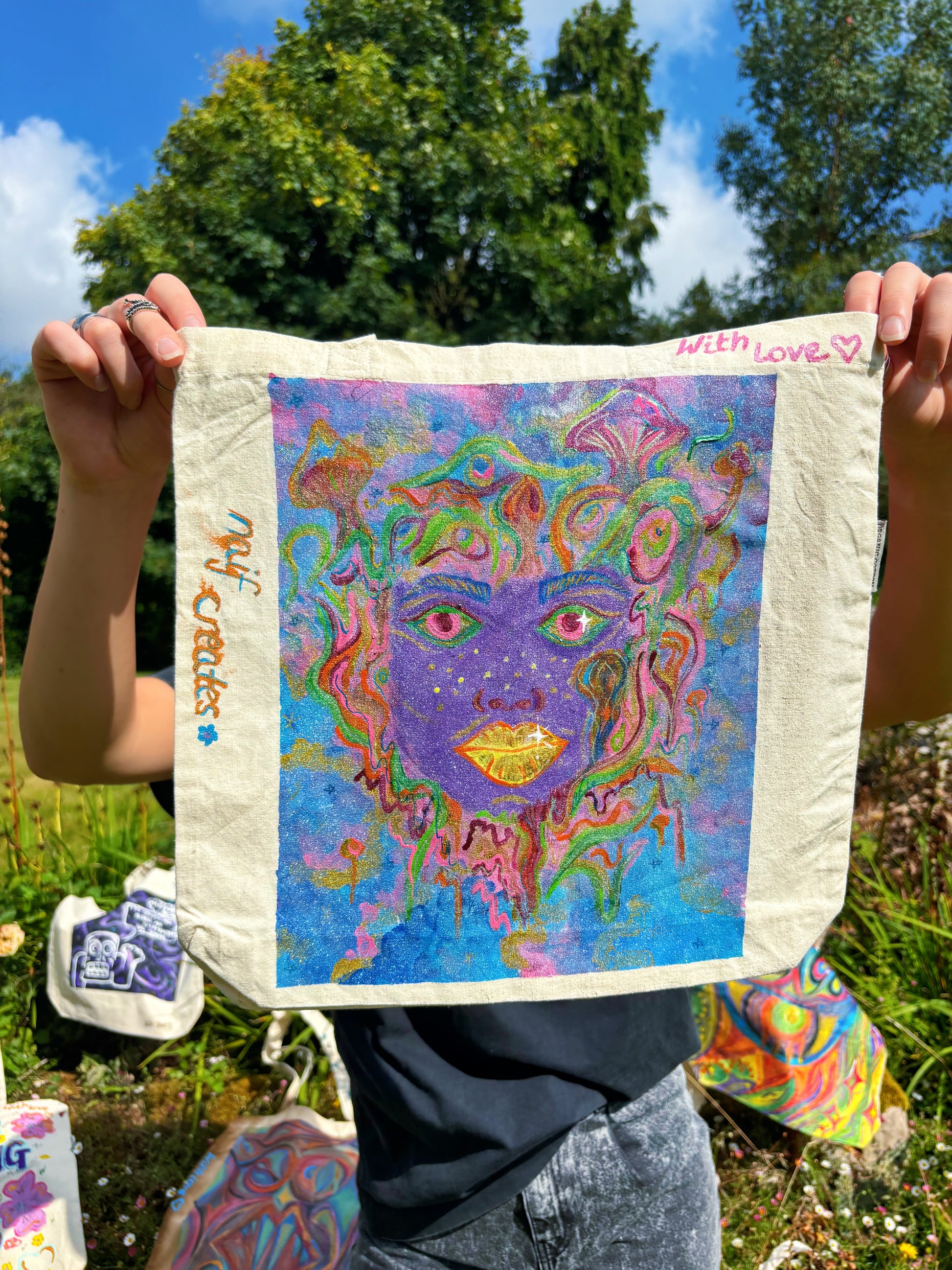 Hand-Painted Eco-Conscious Cotton Tote Bag – "Visions of the Unraveled Mind" Design