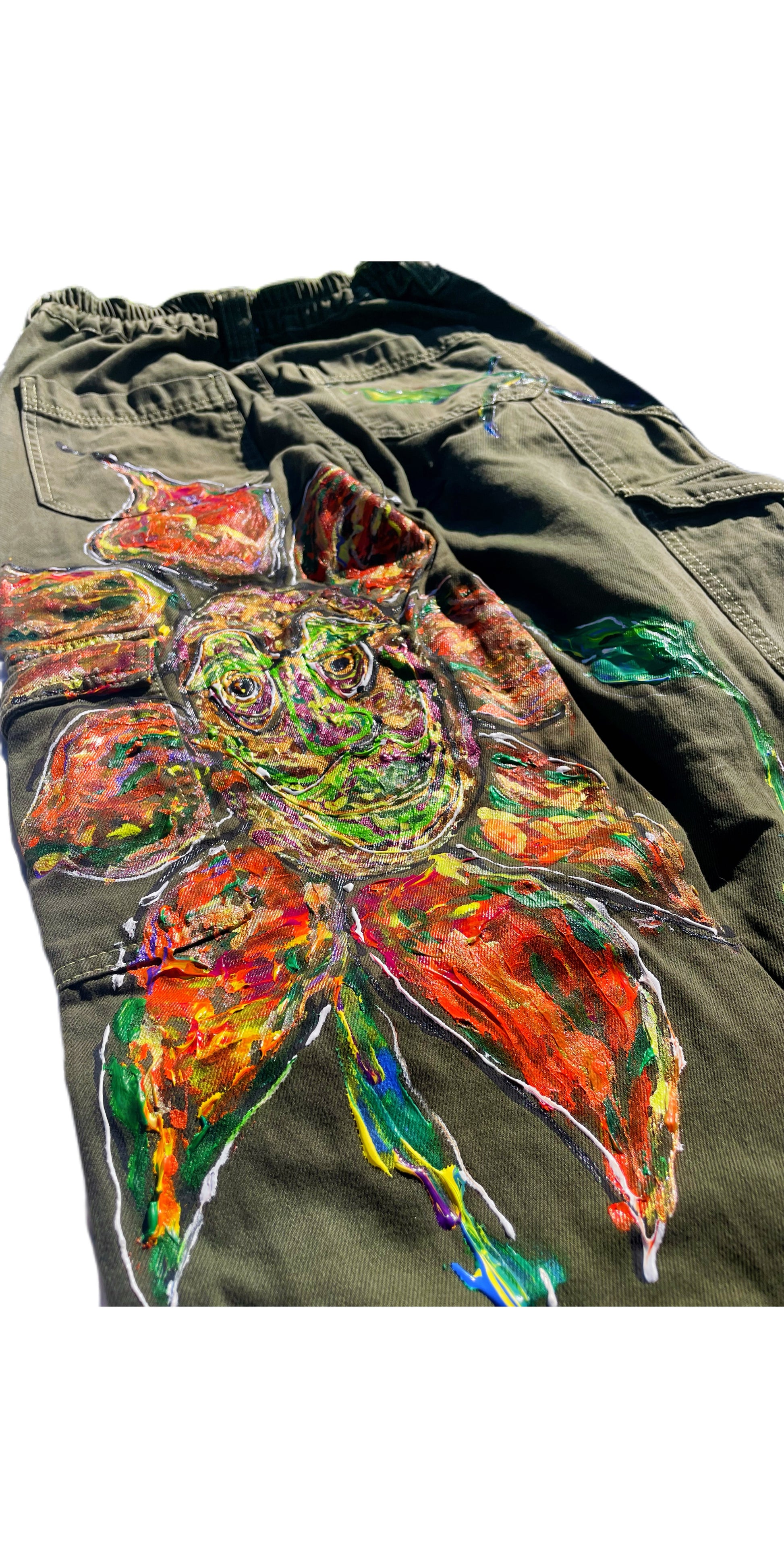 “Get this Doode a Doobie” – Hand-Painted Floral Energy Cargo Pants