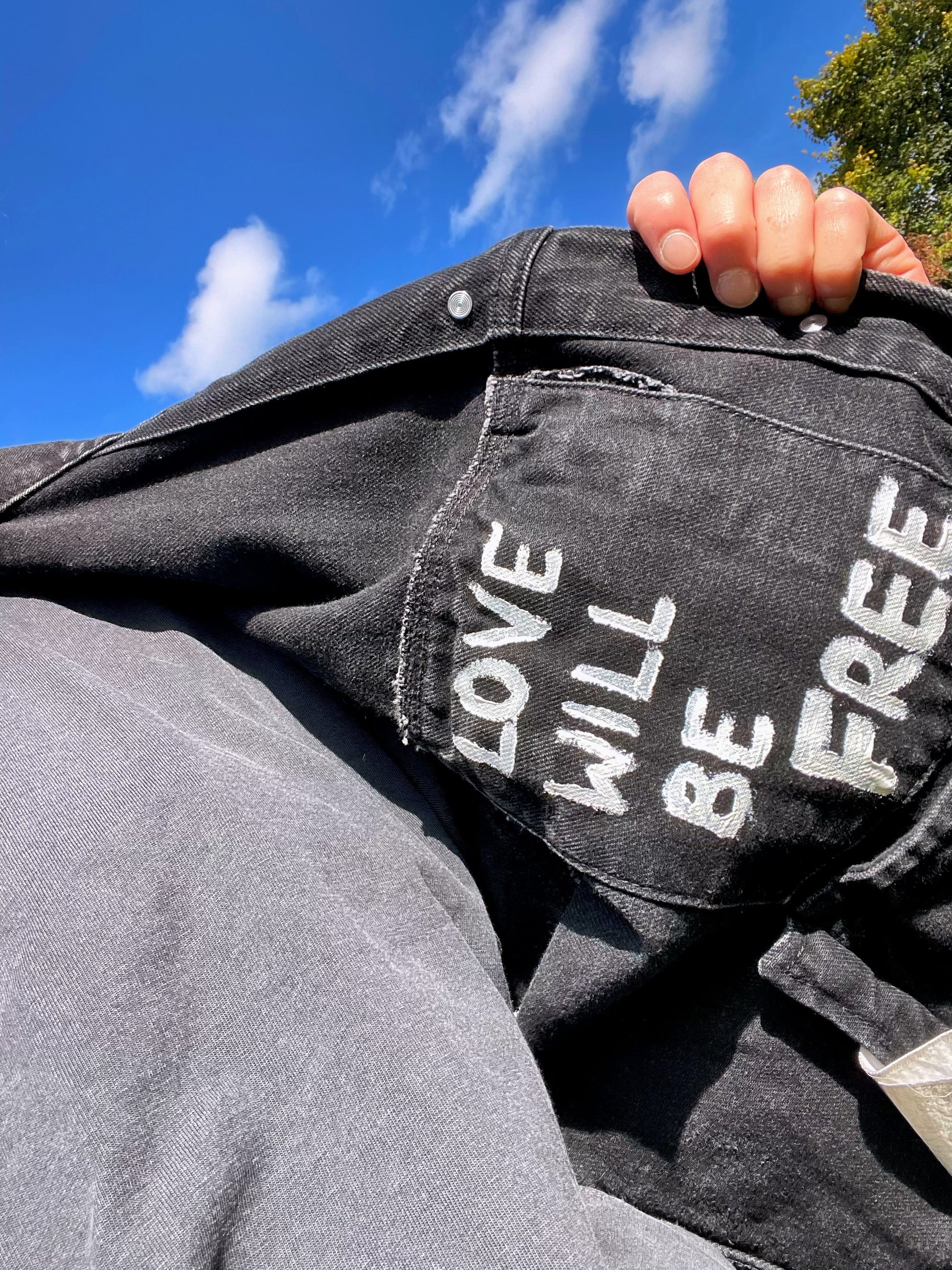 Crafted on a thrifted denim jacket, this one-of-a-kind piece is more than a fashion statement—it’s a wearable symbol of activism and solidarity. Each jacket is uniquely hand-painted, making it perfect for those who stand for freedom, peace, and human rights.