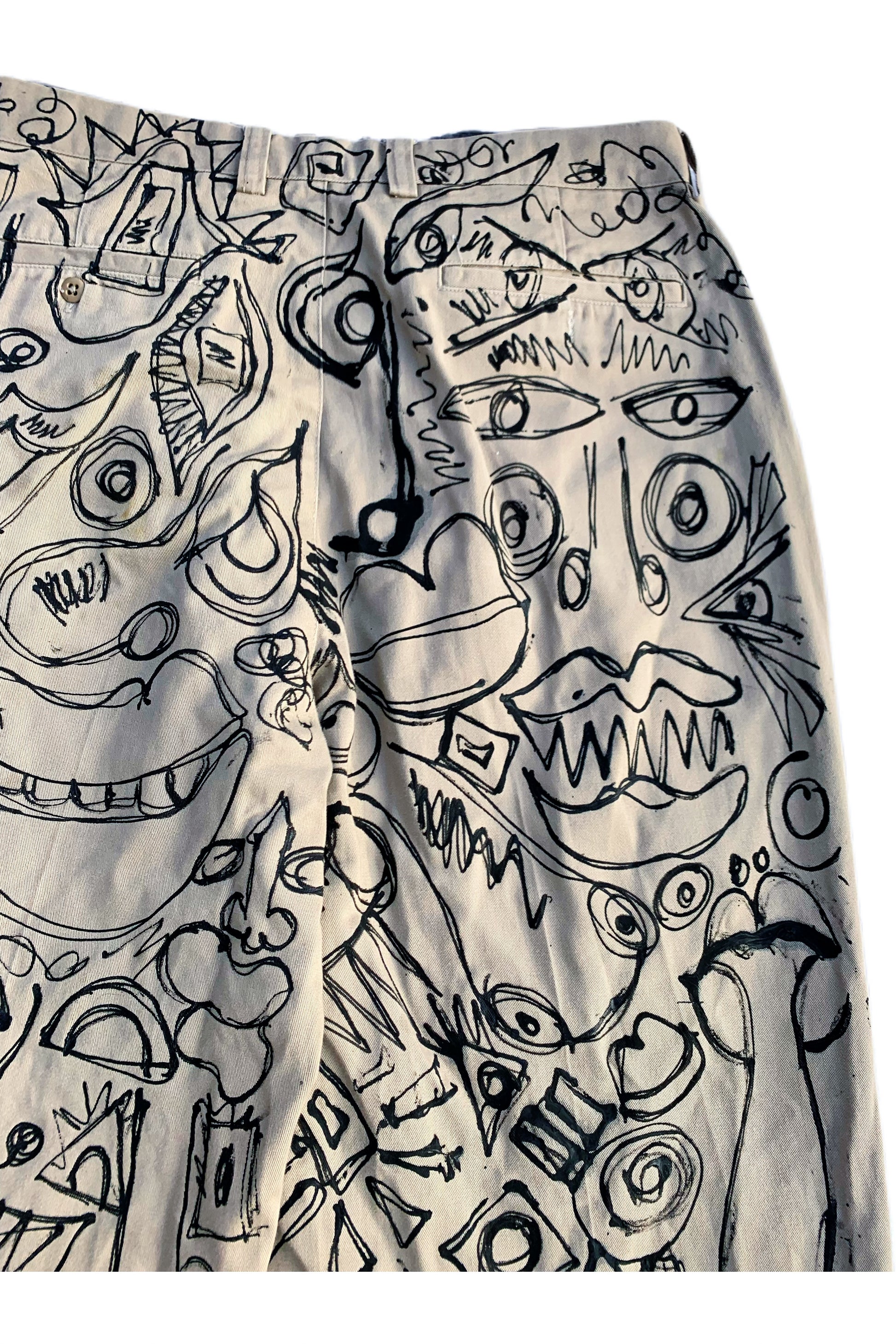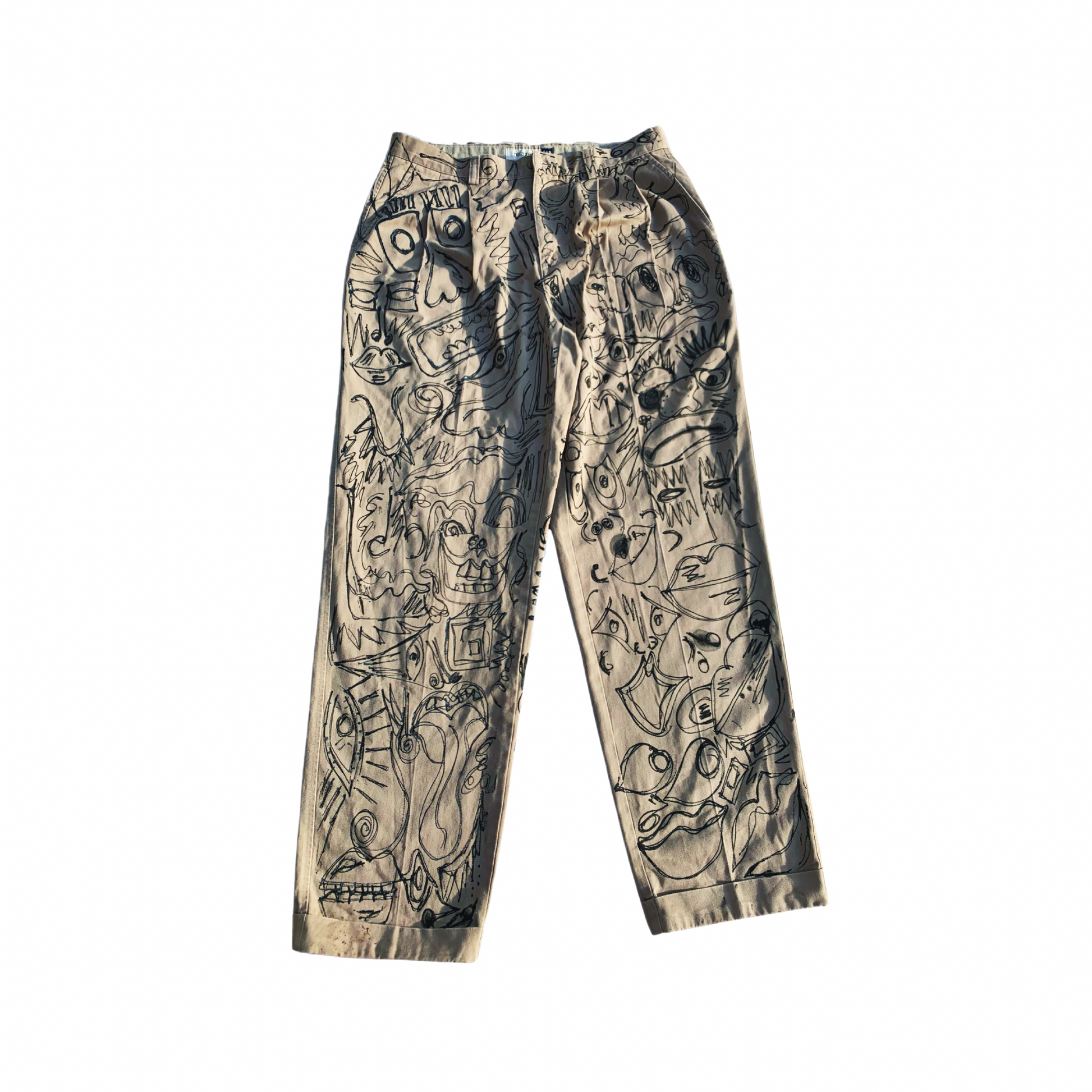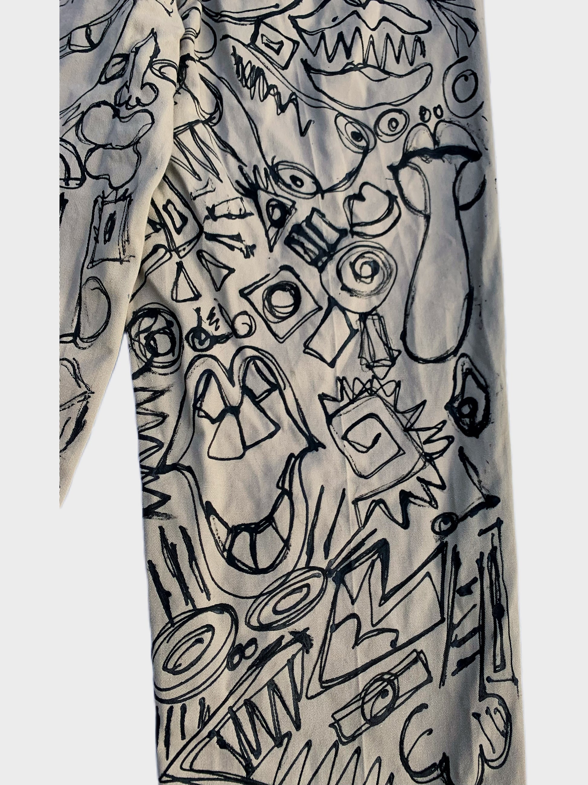 “The Unquiet Canvas”: Hand Painted Doodle Trousers